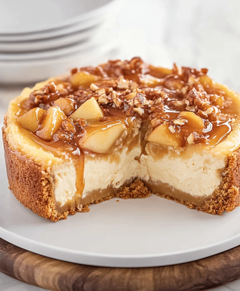A: Yes! You can freeze the cheesecake (without the apple topping and caramel drizzle) for up to 3 months. Thaw it in the fridge overnight and add the toppings before serving.