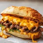 This Cheesy Hot Beef Sandwich recipe is a mouthwatering delight. With tender roast beef, gooey melted cheese, and a savory sauce, this sandwich is perfect for a hearty meal. Serve it hot for the ultimate comfort food experience. Keywords: Cheesy Hot Beef Sandwich, hot beef sandwich, melted cheese, sandwich recipe.