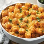 Cheesy tater tot casserole is a comforting dish featuring crispy tater tots, savory ground beef, and a creamy cheese topping. Perfect for family dinners!
