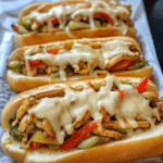 This Chicken Philly Cheesesteak recipe is packed with tender chicken breast, sautéed bell peppers, onions, and gooey melted cheese, all served on a toasted hoagie roll. Perfect for a quick and flavorful meal, this dish is a lighter twist on the classic Philly cheesesteak, making it a family favorite.