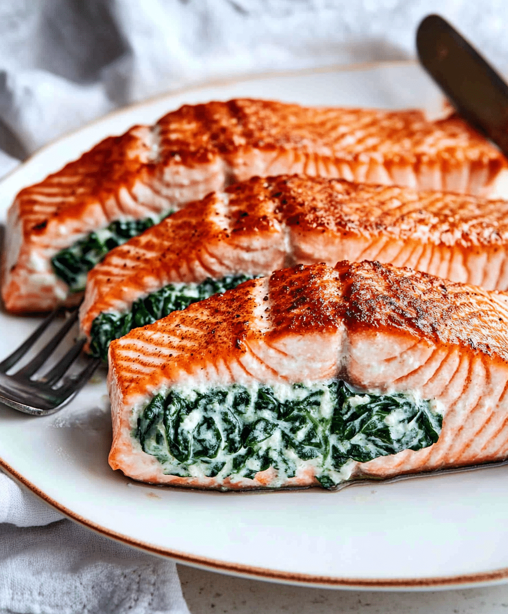 This Delicious Easy Spinach Stuffed Salmon Recipe is a restaurant-quality dish you can make at home with minimal effort. Juicy salmon fillets are filled with a creamy, cheesy spinach stuffing and baked to flaky perfection. This low-carb, high-protein recipe is ideal for keto and gluten-free diets and ready in just 30 minutes, making it perfect for busy weeknights or elegant dinners.