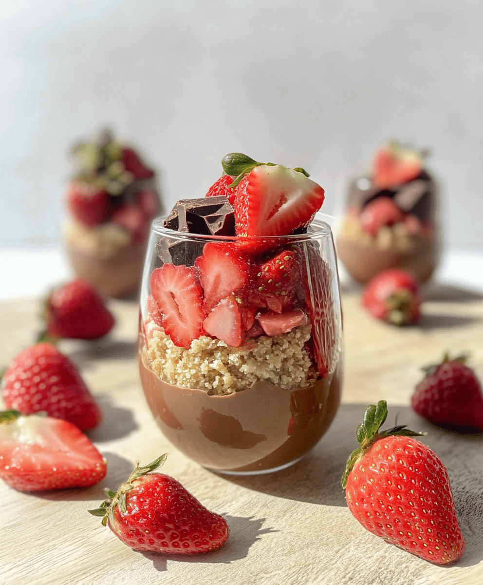 Finally, you’ll want small glass cups or dessert ramekins for serving. Clear cups let the beautiful layers show through—ganache on the bottom, strawberries on top, maybe a little gold leaf or chopped pistachio as a final flourish.