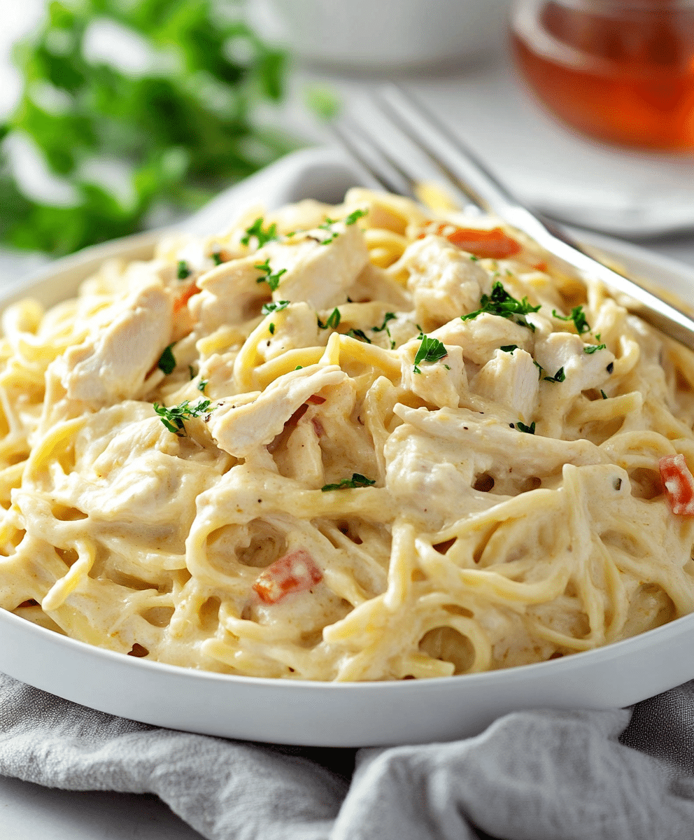 - Mix Everything Together: Combine the chicken, pasta, and sauce, making sure everything is evenly coated.