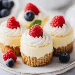 These delicious mini cheesecakes are a bite-sized dessert with a buttery graham cracker crust and creamy filling. With a few simple ingredients, this easy recipe delivers a rich, smooth texture topped with fresh fruit, chocolate, or caramel for a customizable treat. Perfect for parties, gatherings, or a quick dessert option, these cheesecakes bring the taste of a classic New York cheesecake in a mini version.
