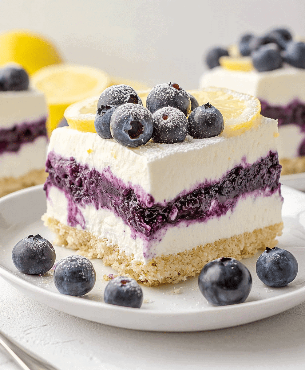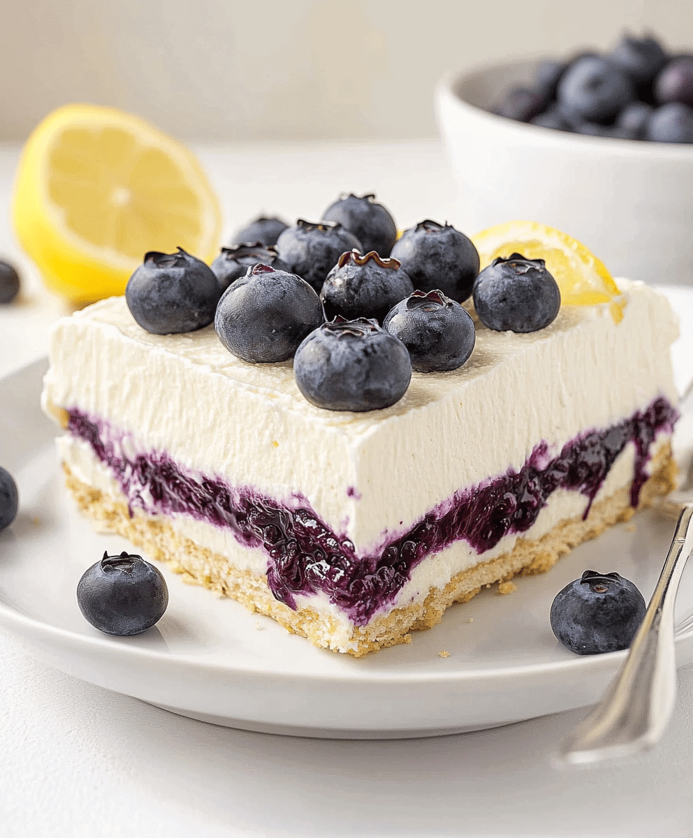This no bake lemon blueberry dessert is a delicious and refreshing treat made with fresh blueberries, zesty lemon, and creamy layers. Perfect for hot days, this easy no bake recipe brings together sweet and tangy flavors in every bite. Ideal for parties, picnics, or any time you crave a cool fruity delight.