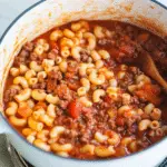 This old-fashioned goulash recipe is a comforting and hearty dish made with ground beef, tomatoes, macaroni, and savory seasonings. Perfect for a quick and easy dinner, this American-style goulash is rich in flavor and made in one pot for minimal cleanup.
