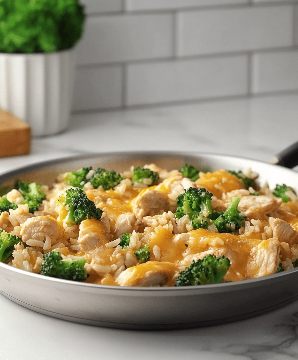 This one-pan cheesy chicken, broccoli, and rice recipe is a simple and satisfying meal perfect for busy weeknights. Packed with tender chicken, nutritious broccoli, and gooey cheese, it's all cooked in one pan for easy cleanup. Ready in under 30 minutes, this recipe delivers comfort with minimal effort.