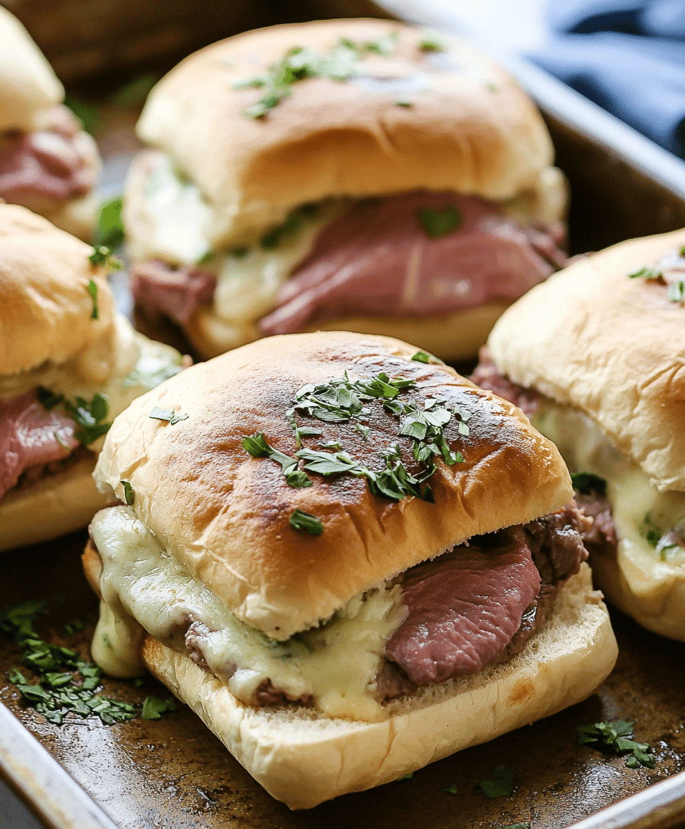 And let’s not forget about the flavor. Juicy, thinly sliced beef, sweet caramelized onions, and melted provolone or American cheese create an indulgent experience in every bite. One taste, and these sliders will be your new go-to recipe.