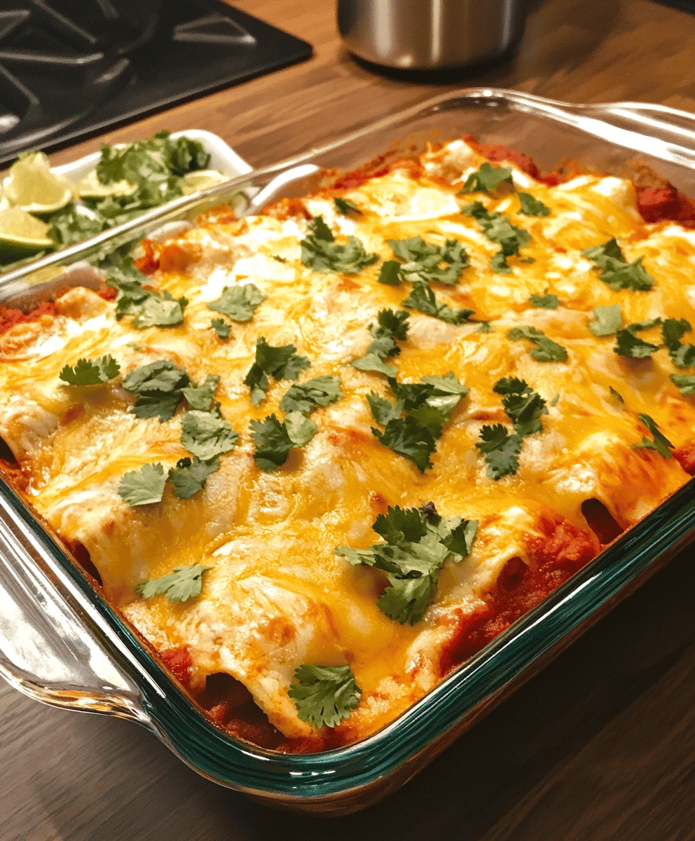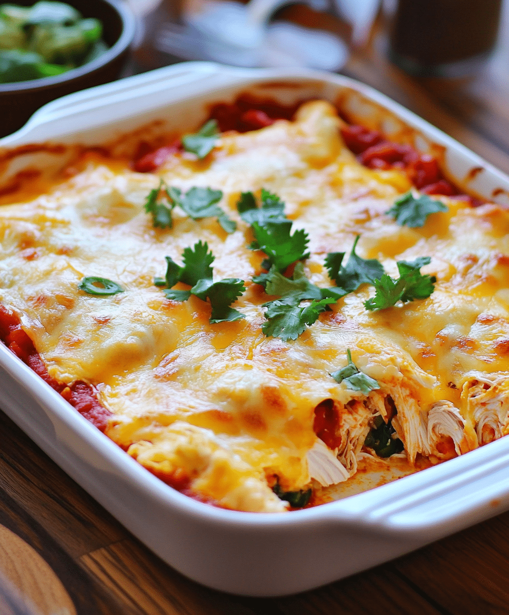 - Customize the Heat: If you like a spicier dish, use hot salsa and enchilada sauce, or add diced jalapeños into the chicken mixture.