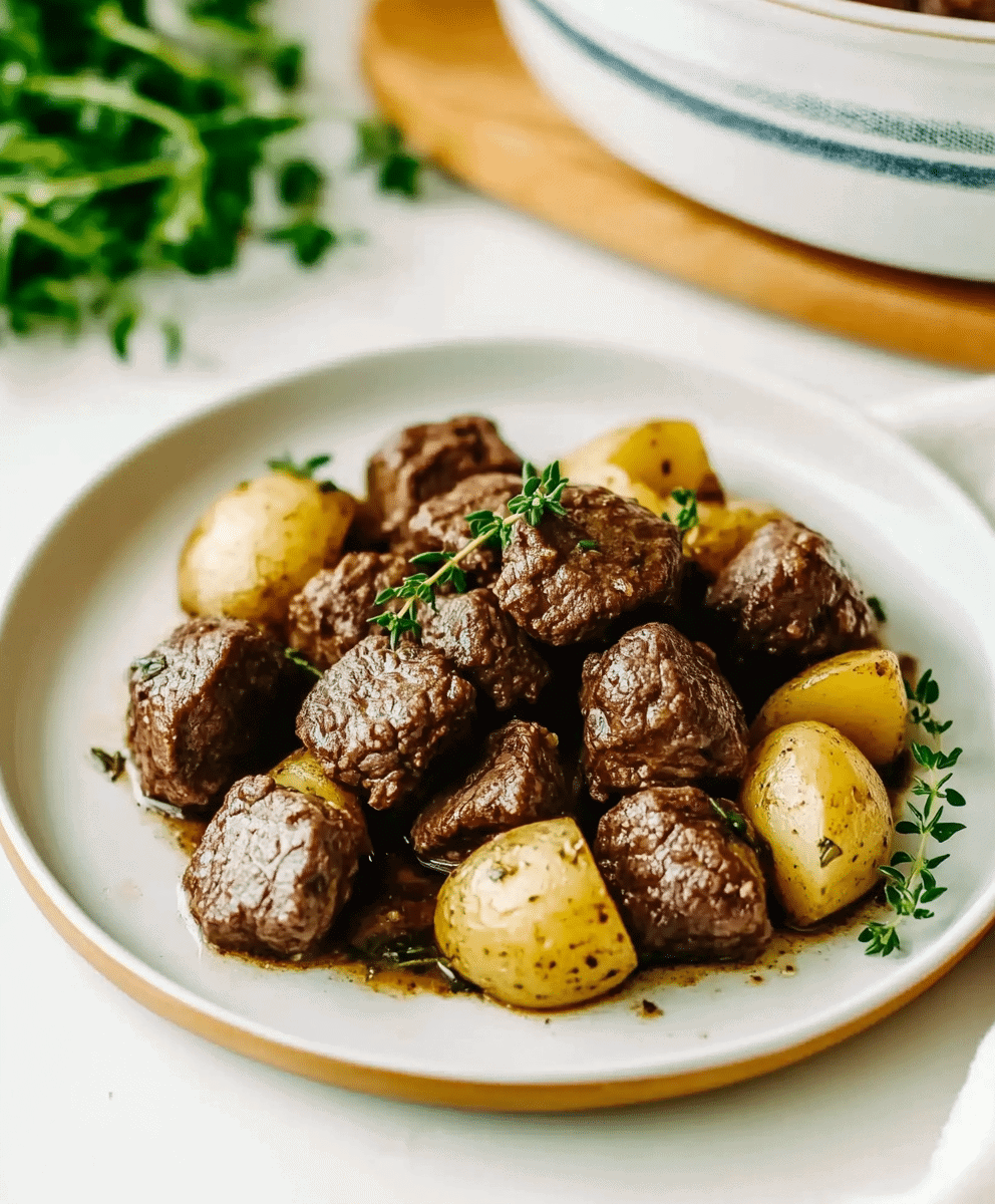 And finally, this recipe is a full meal in one pot. The beef and potatoes cook together, soaking up all those garlicky juices. No need for extra sides—unless you want to add a crusty bread to mop up that sauce!