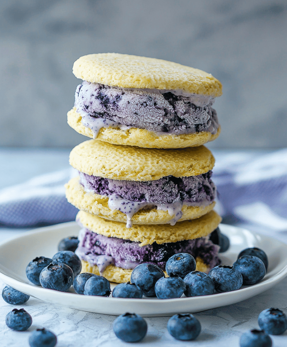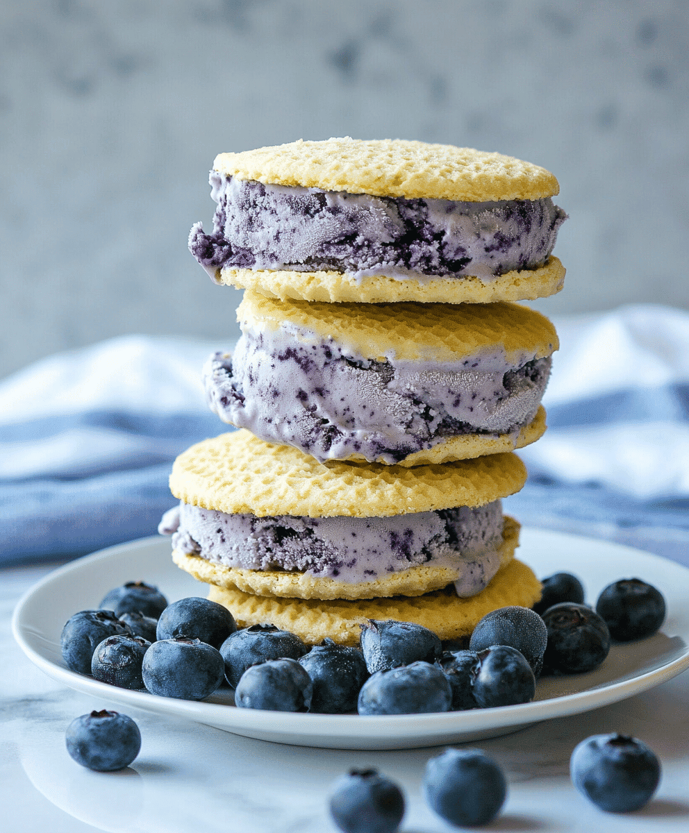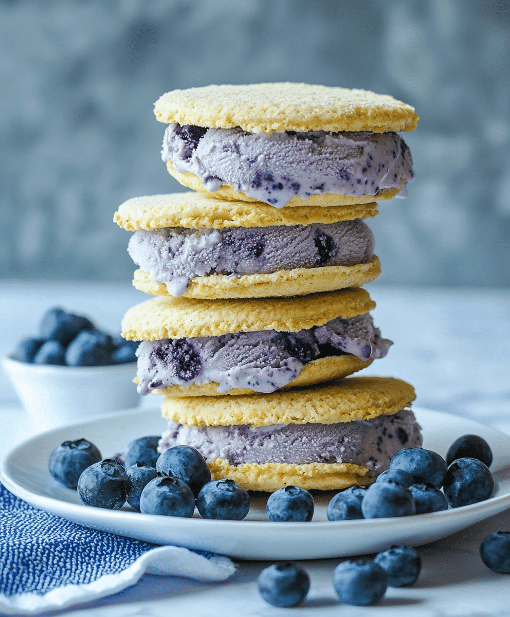These Summer Blueberry Ice Cream Sandwiches are a refreshing and delicious frozen treat made with homemade blueberry ice cream and soft cookies. Perfect for summer gatherings, this fruity dessert combines sweet berries, creamy texture, and a fun-to-eat format. Make your summer memorable with this easy blueberry ice cream sandwich recipe.