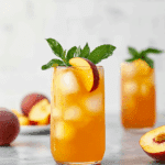 Enjoy a sweet, fruity Summer Peach Iced Tea Drink, made with fresh peaches, tea, and a touch of honey. Perfect for hot weather!