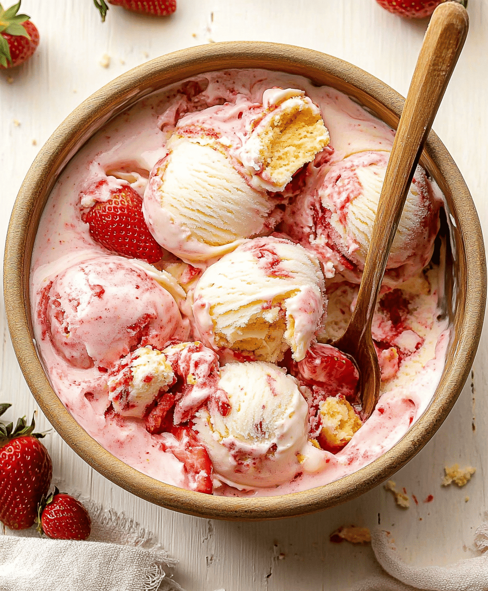 Another win? It’s a total crowd-pleaser. Kids love the vibrant strawberry swirls, while adults appreciate the buttery crunch of shortcake crumbs. Serve it in cones, bowls, or even sandwich it between cookies for the ultimate ice cream sandwich.