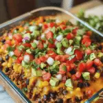 This Taco Casserole with tortillas is a flavorful, layered dish featuring seasoned ground beef, melted cheese, and salsa. Ideal for busy weeknights, this easy-to-make casserole is a satisfying twist on traditional tacos.
